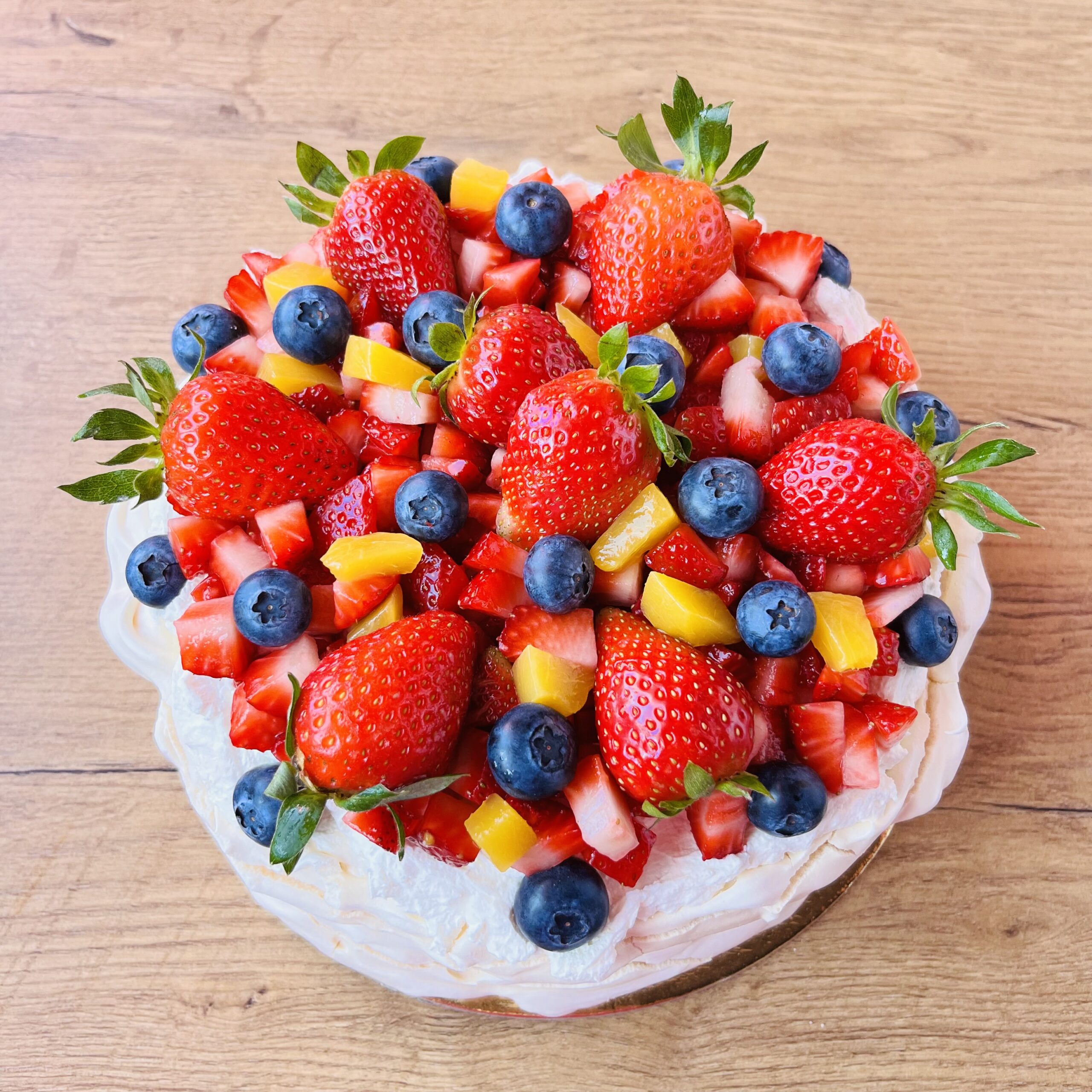 Tort bezowy to prawdziwa uczta dla miłośników lekkich i eleganckich deserów. Składa się z chrupiących, delikatnych blatów bezowych, które wprost rozpływają się w ustach, przełożonych puszystym kremem na bazie śmietanki i mascarpone oraz świeżymi owocami. Dzięki swojej wyjątkowej strukturze łączy w sobie kruchość, lekkość i intensywną słodycz, a owoce nadają mu świeżości i przełamują smak.